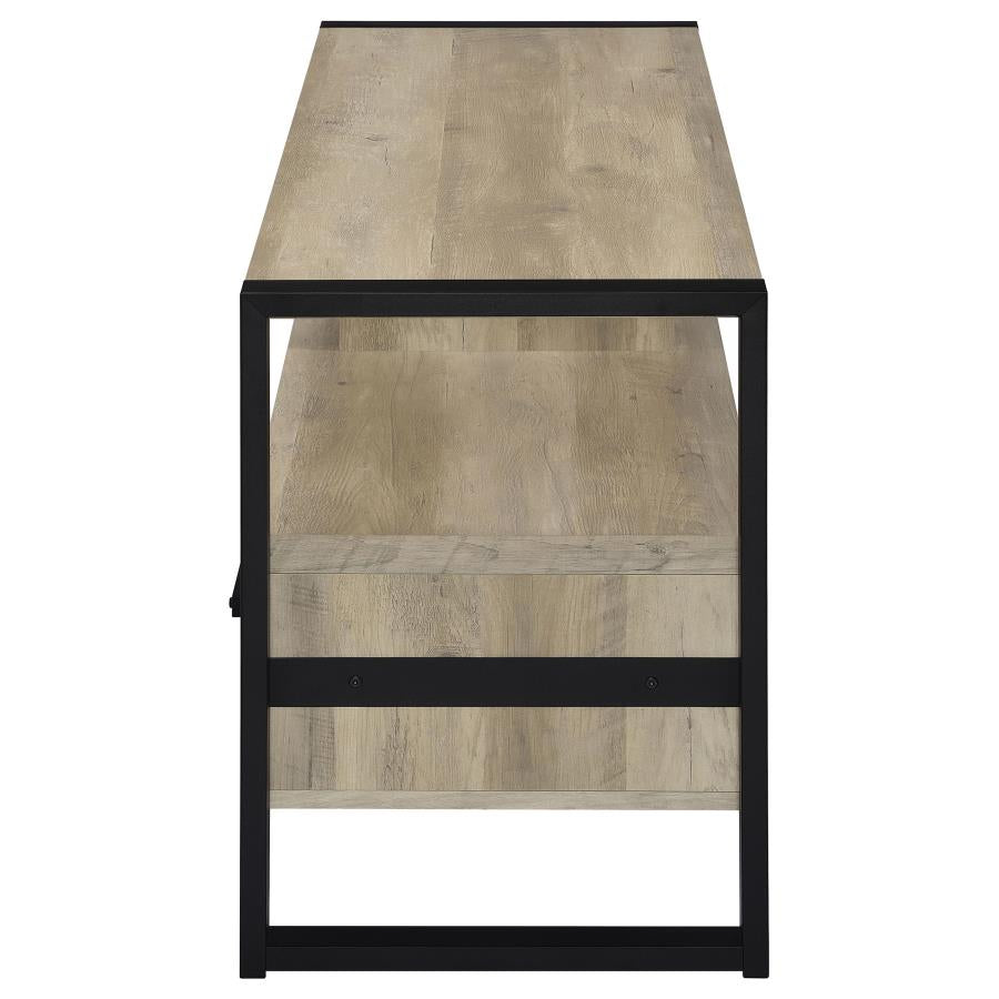 * Organize your family room or living room with this stylish wood and iron TV stand featuring an antique pine finish * Functional stacked design with two open compartments to house electronic components and two lower drawers with Euro glides for easy operation * Black iron side braces and matching drawer pulls create a contrasting finish effect * Versatile and earthy, perfect for a casual space that transforms into a great spot for sports or movies * A pleasant antique pine finish adds warmth and charm |