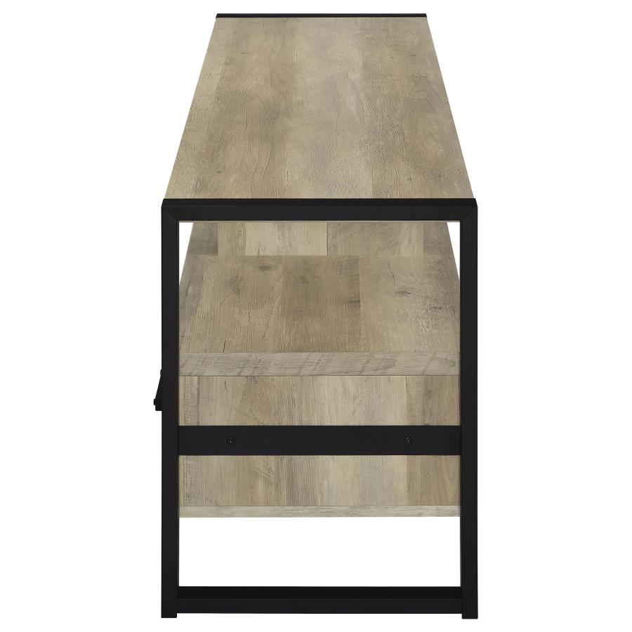* Modern industrial unit serves multiple purposes and centralizes entertaining functions with a cool antique pine finish and black iron side braces * Stacked design with three open compartments to house electronic components and three lower drawers with Euro glides for easy operation * Matching drawer pulls create a slick contrasting finish effect * Versatile and earthy, perfect for a casual space that transforms into a place for sports or movies * Ideal for any home, this TV stand is stylish and functional |