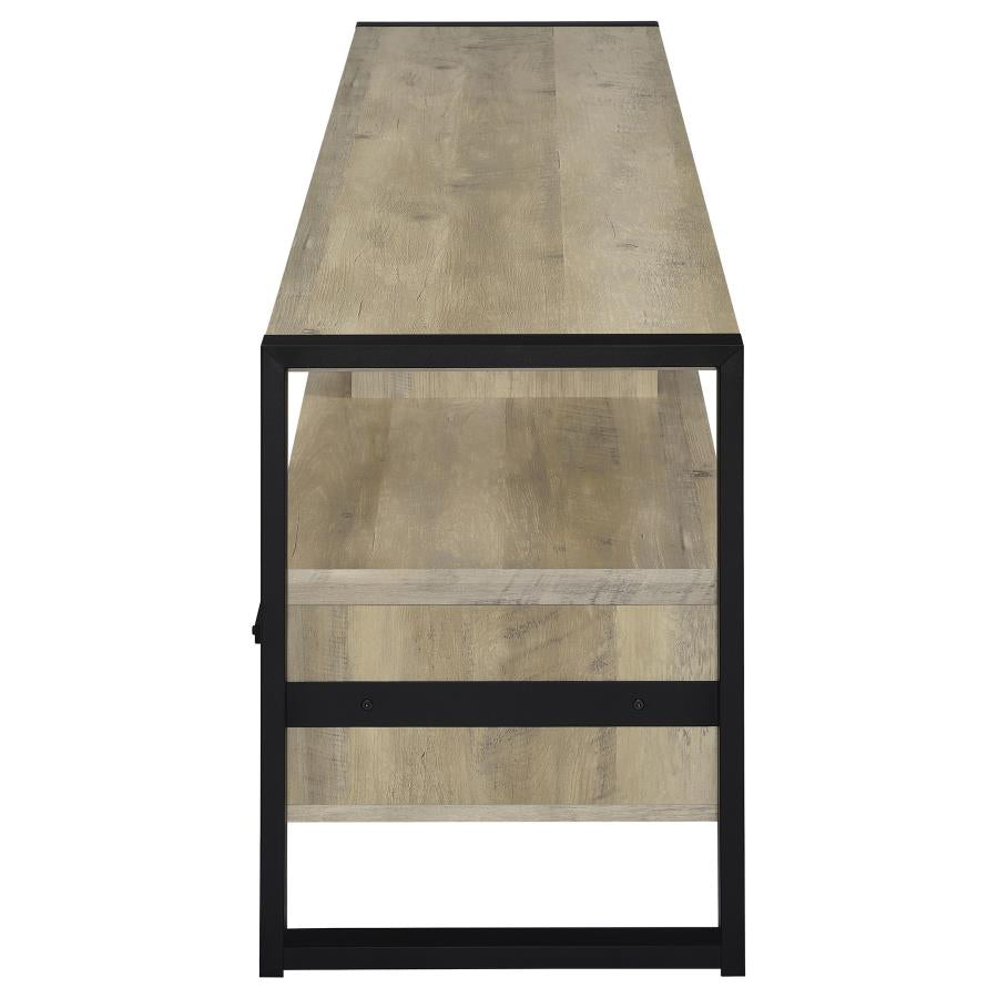 * Modern industrial unit serves multiple purposes and centralizes entertaining functions with a cool antique pine finish and black iron side braces * Stacked design with three open compartments to house electronic components and three lower drawers with Euro glides for easy operation * Matching drawer pulls create a slick contrasting finish effect * Versatile and earthy, perfect for a casual space that transforms into a place for sports or movies * Ideal for any home, this TV stand is stylish and functional |