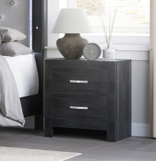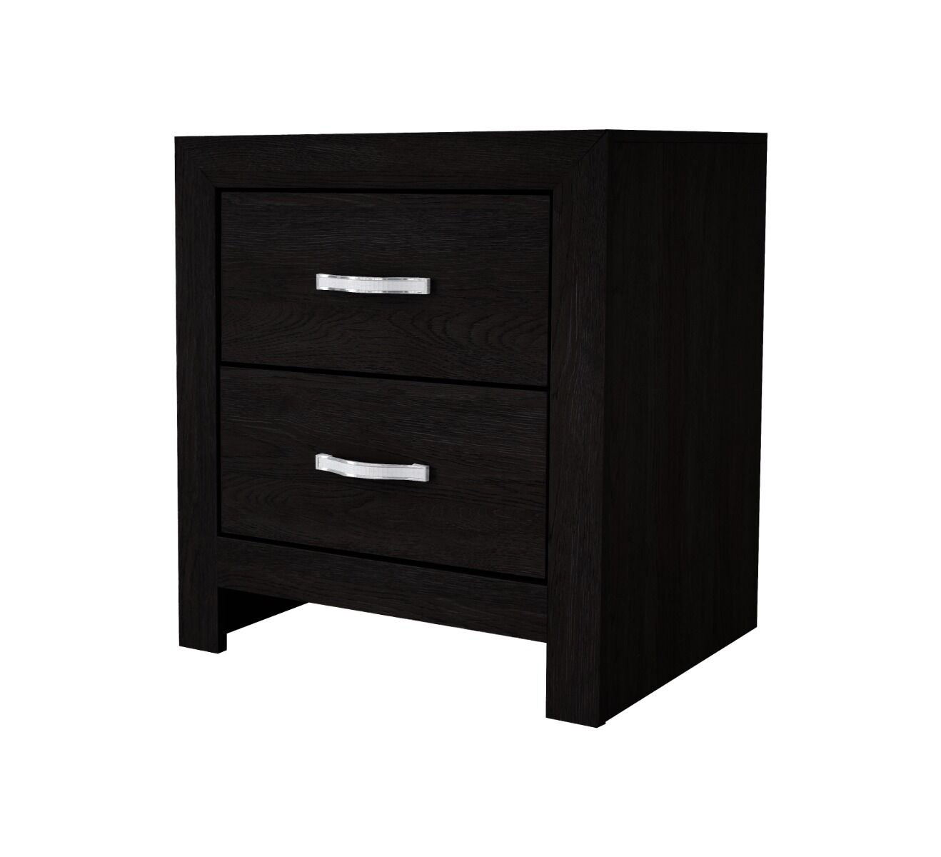 This Jaylen Nightstand from Crown Mark Furniture makes a perfect addition to any bedroom! With its classic transitional design and black wood solid and venner construction, this two drawer nightstand stands out with its chrome finished handles and sturdy legs. The clean simple lines make it easy to clean and offer a lasting durable construction that looks great in any home.