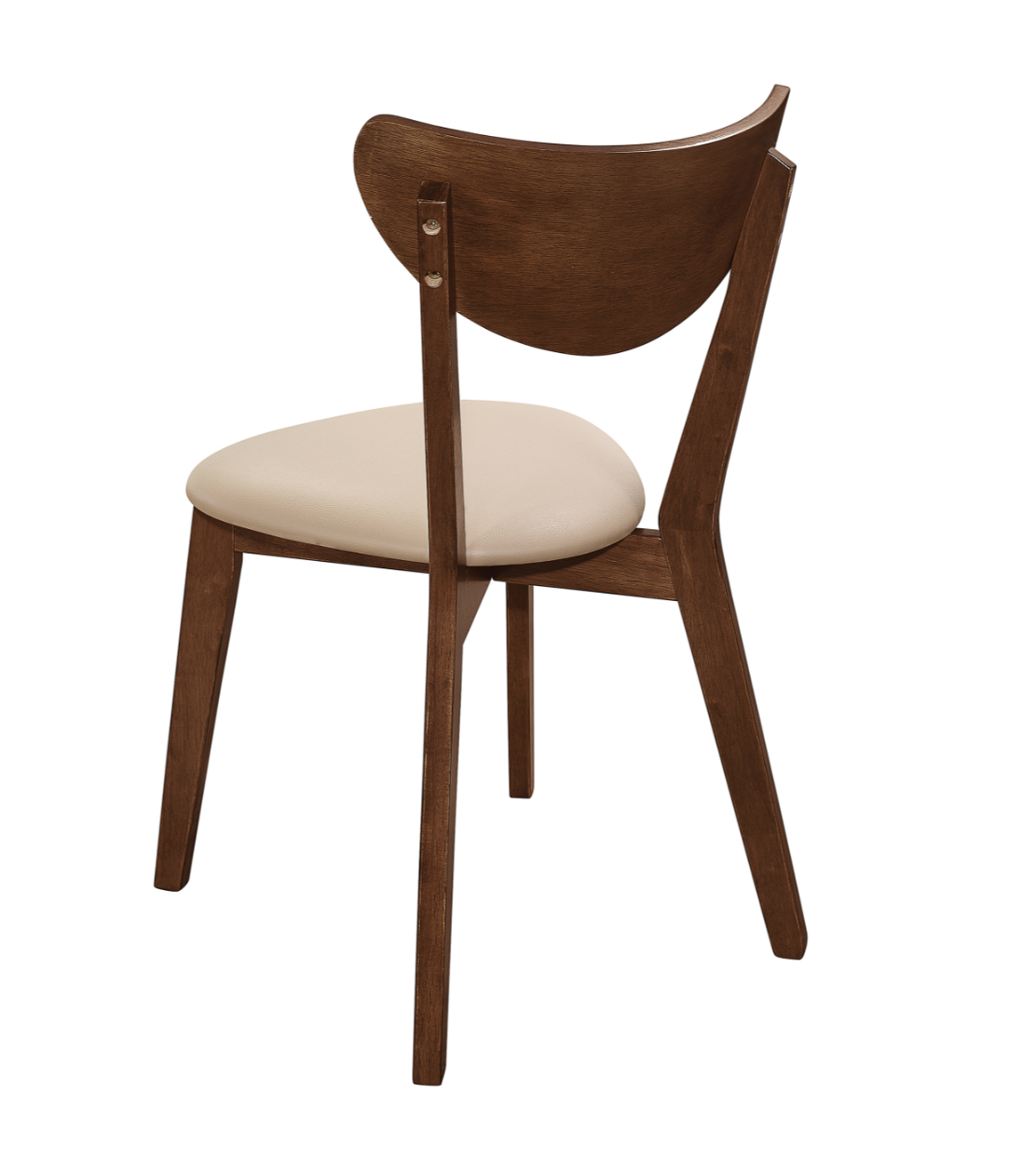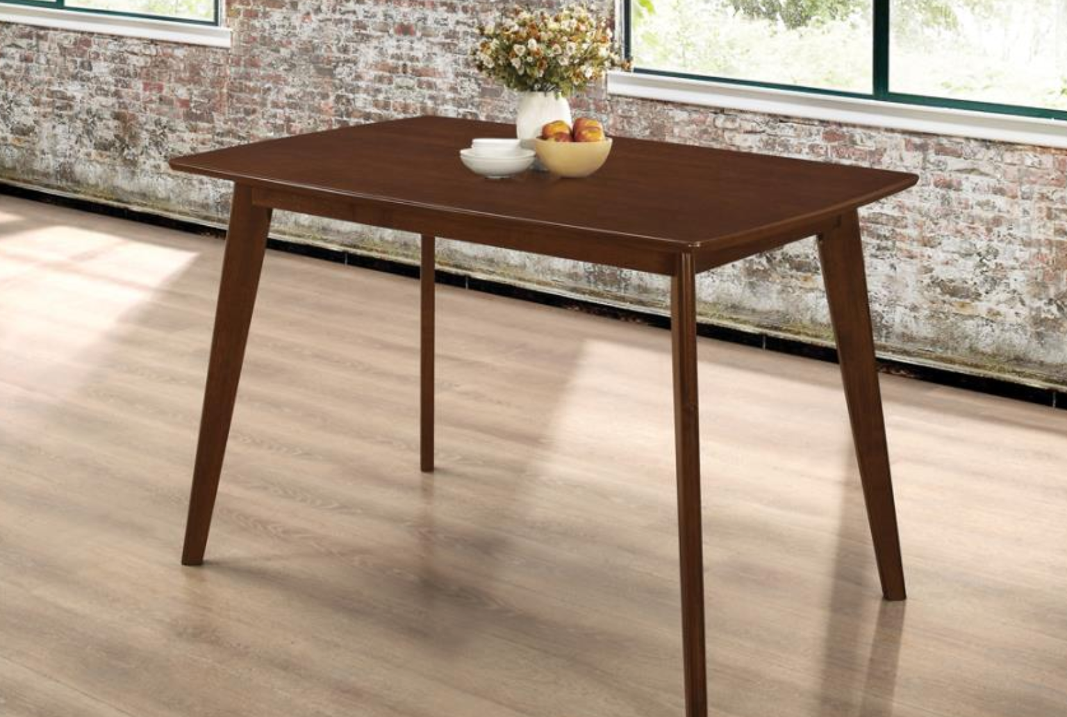 Anchoring the Kersey Collection, this solid wood dining table imparts a retro feel. Rectangular top and angled legs give it a resolute profile. Finished in chestnut that goes well by a sunlit window overlooking a garden. Crafted for functionality yet appreciated for its adaptability to your one-of-a-kind home decor. Choice of two chair styles to customize the look.