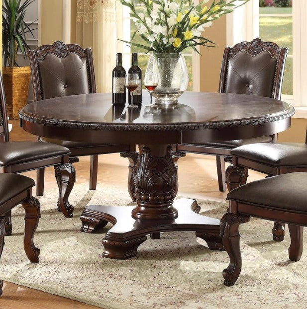 The Kiera Round Dining Set is perfect for those who want a luxurious and sophisticated look in their home. This set is made from solid wood and features beautiful hand-carving and baseball stitching. The tufting on the chairs and the etched glass on the table top give this set a unique and elegant look. The Kiera dining set will give your home a warm and inviting feeling. It is perfect for those who want to relax and enjoy a meal with their friends or family. The Kiera dining set is made from high-quality materials and it is sure to last for years to come.