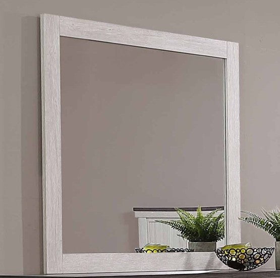 The Leighton Dresser Mirror from Crown Mark is a unique and stylish piece of furniture. It has a cottage style, which combines perfectly with its white finish made from wood veneers and solids. Its distressed finish gives it an added touch of character, making it perfect for any bedroom. Additionally, it is easy to clean and its simple design ensures it won't date—so you can enjoy its durable construction for a lifetime. Make it part of your home today, and never be disappointed.