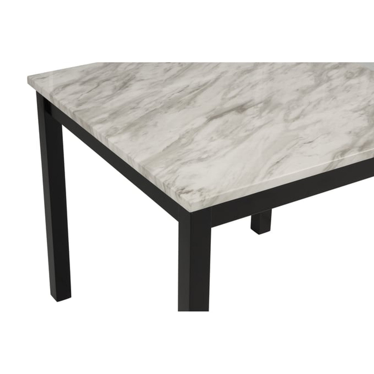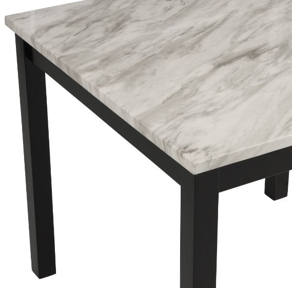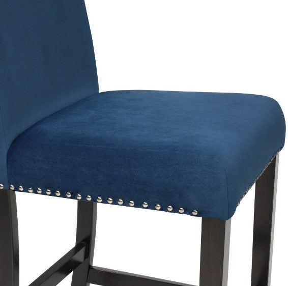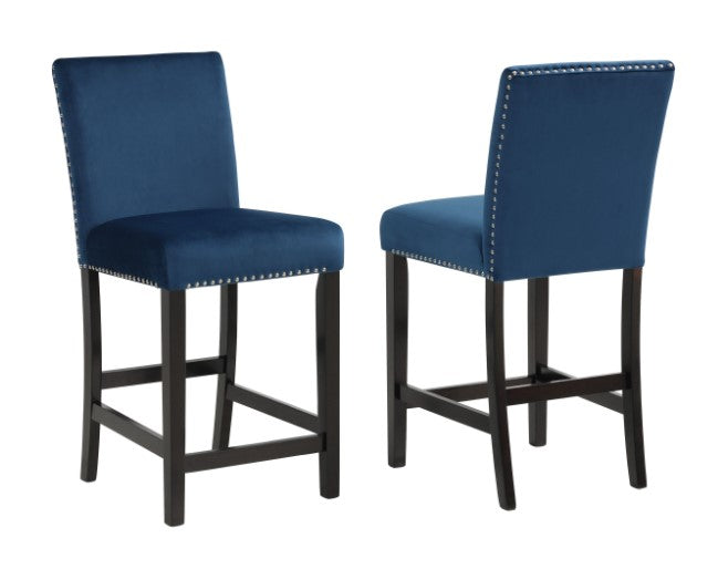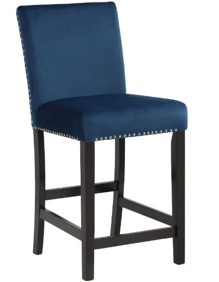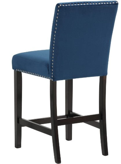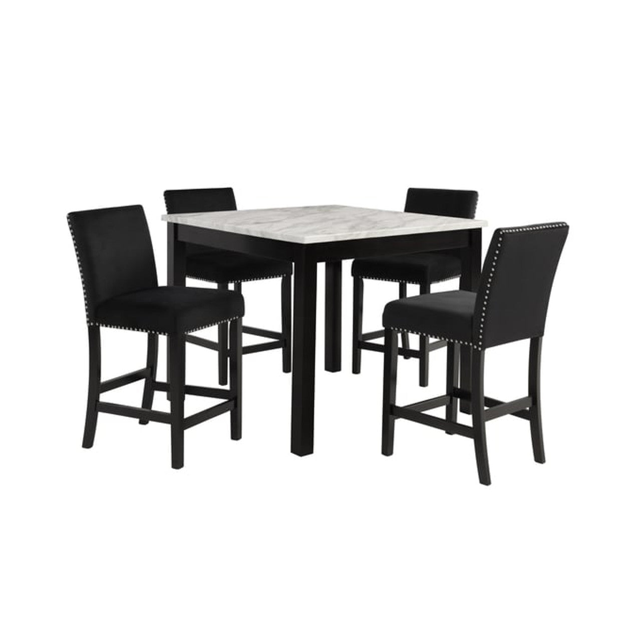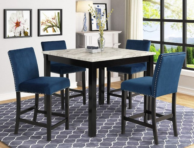 The Lennon 5 Piece Dining Set in Royal Blue is the perfect addition to your transitional-style décor! This set includes a dining table with a wooden frame and faux marble tabletop, and four counter-height chairs with an upholstered back and seat, nail head accents, tapered legs and footrest. With its durable construction and stunning colors, this dining set will look great in your home while providing years of lasting use. Enjoy entertaining friends and family in style with the Lennon 5 Piece Dining Set!