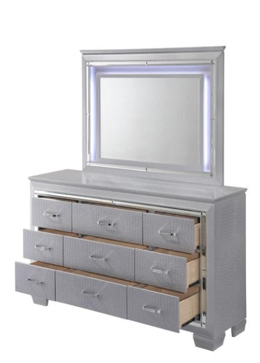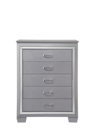 5-piece includes bed, dresser, mirror, nightstand, and chest.
