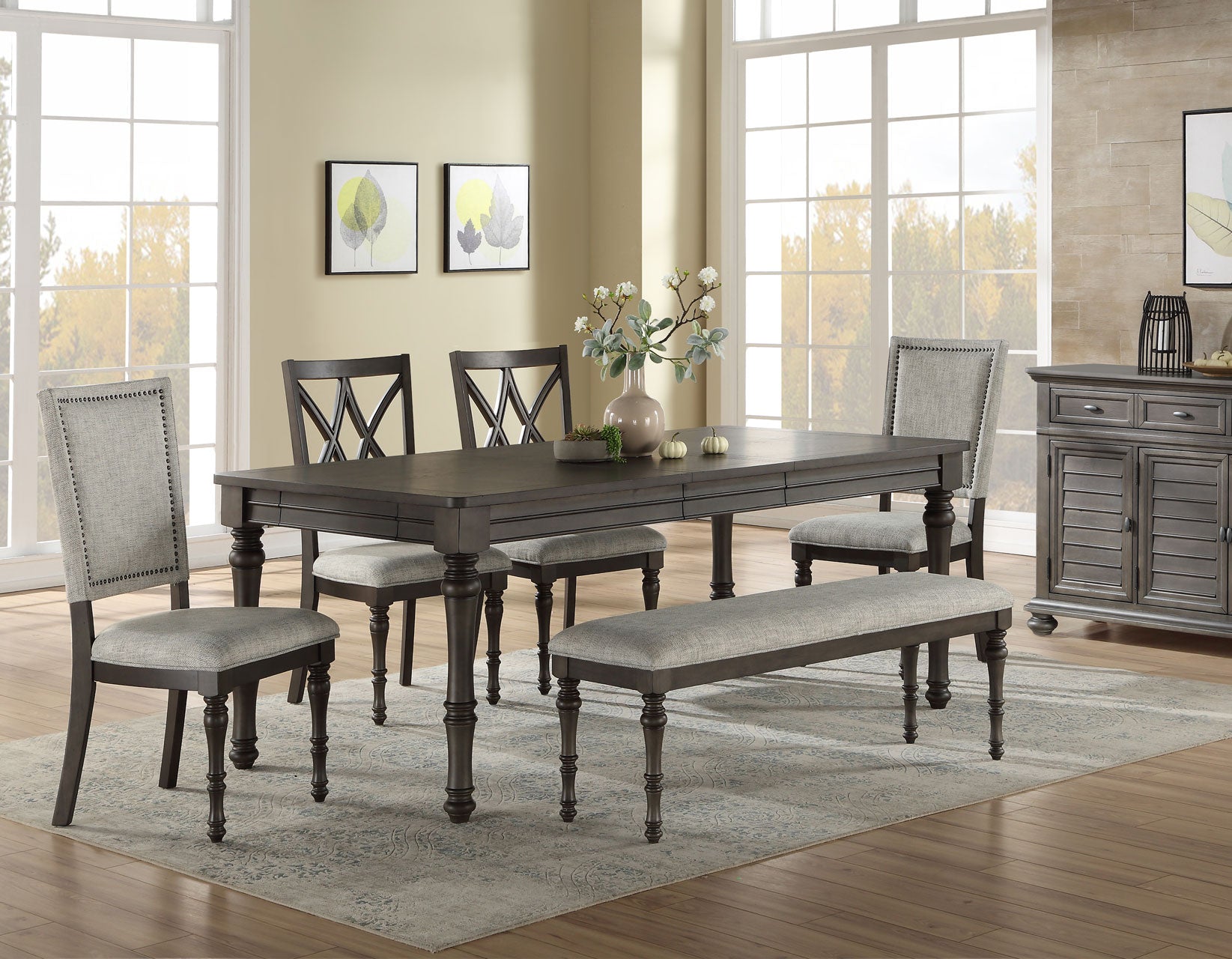 Linnett dining takes traditional dining styling and adds a modern twist to create a collection that is as comfortable as it is stylish. A choice of upholstered or wooden back side chairs gives you the option of mixing and matching the collection to suit your own personal style. The table extends to a full 84 inches with leaf to seat up to eight.
