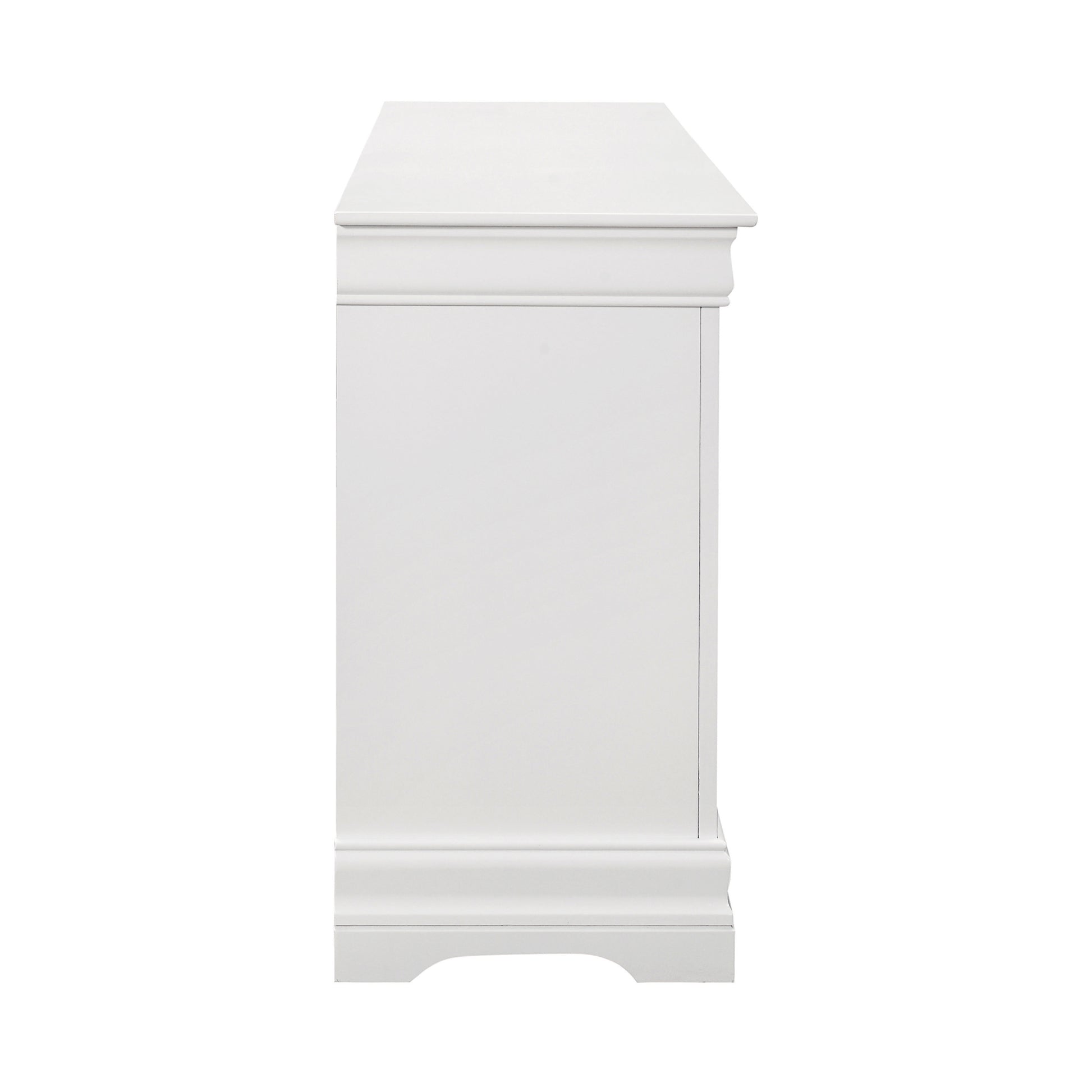 Organize and store your belongings out of sight with this gorgeous six-drawer chest. Felt-lined drawers offer ample storage space for clothing, blankets, slippers, and more. Kenlin glides allow for smooth, easy functionality. A simple silhouette accents this already beautiful piece. The clean lines and rich, white finish of this stunning dresser add a sense of traditional style to your guest room or master suite.