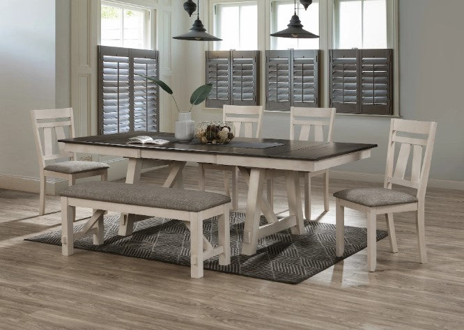 Gather around the table with family and friends for good food and great conversation with the Maribelle Rectangular Dining Set. This dining set comes in a beautiful chalk gray that is sure to complement any home's decor. With a sleek and stylish design, this dining set is perfect for any home. Gather your loved ones around this elegant set and enjoy good food and company.
