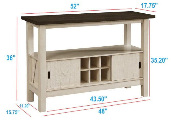 - Dining Server: 17.00"W x 52.00"D x 36.00"H
