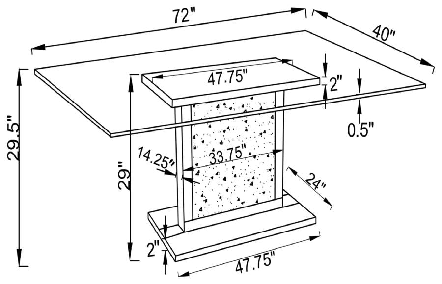 - Faux diamond encrusted rectangular pedestal base with mirror trim accents lend glistening effect