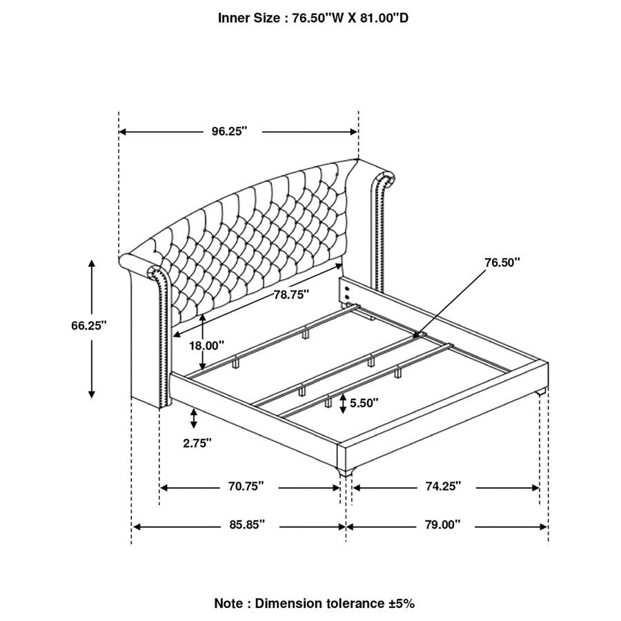 Every morning you'll wake up like you're living in a castle with this exquisite traditional style upholstered bed. An elegantly dramatic wingback style headboard makes a stunning focal point in your sleeping space. Adorned with nail head trim and button tufting, the velvet is luxuriously soft to the touch. This bed is supported on a low profile with sleek silver chrome legs. Regal and plush, this piece is the epitome of style and function.