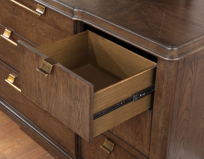 - Metal side drawer glides offer whisper-smooth drawer operation