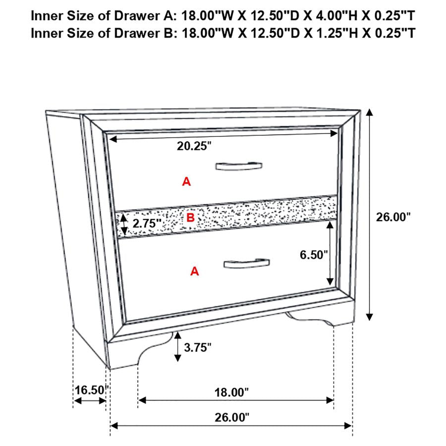 Miranda 2-drawer Nightstand Tray Black