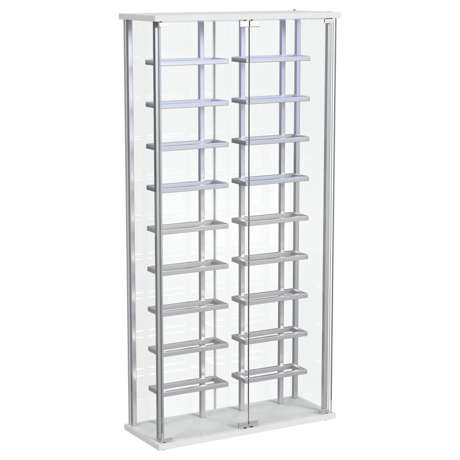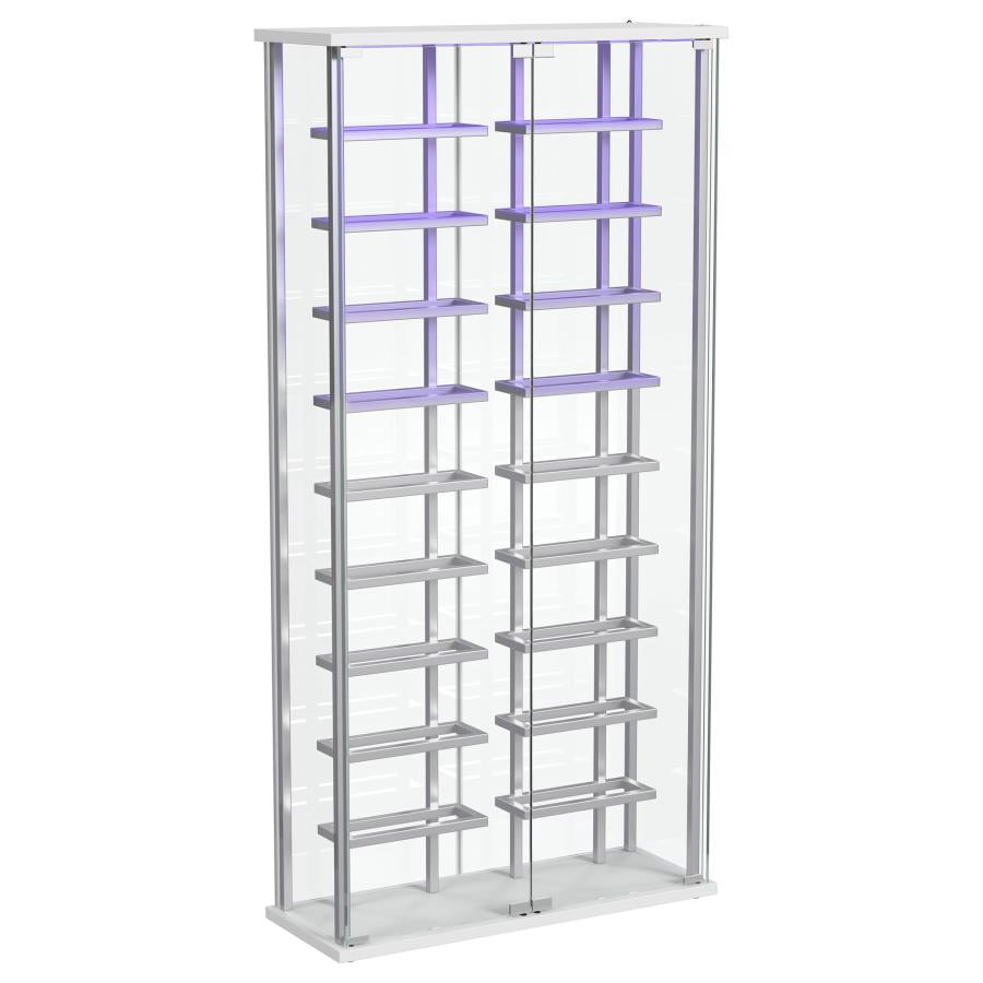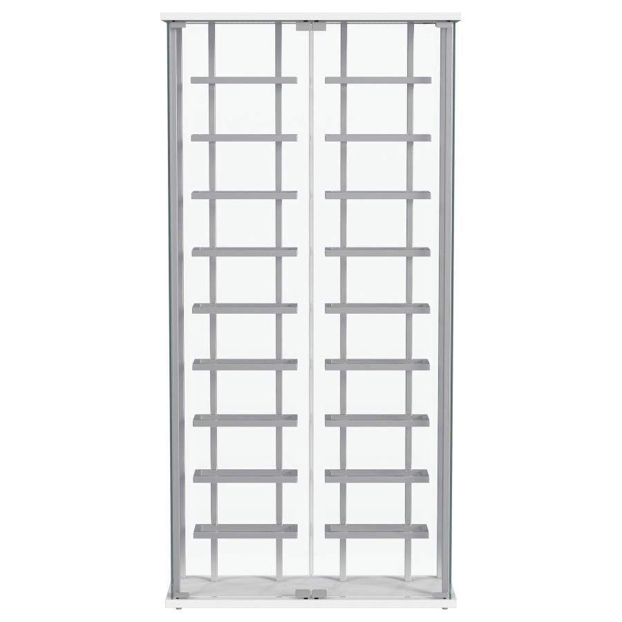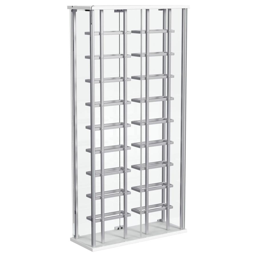 * Modern bar cabinet creates a chic display space for impressive, collectible vintages * Features clear glass on all four sides, with two doors for easy access * Shelving features a gleaming chrome finish that adds light, airy elegance * Cabinet is complete with LED strip lights operated with a touch switch * Cabinet displays 18 bottles of wine to create a stylish presentation in a kitchen or dining room |