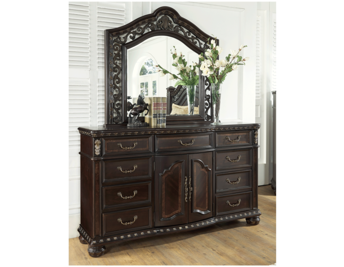 Large-scaled yet romantic bedroom collection from Steve Silver Company. Poster bed is available in king or queen sizes and is complemented by several options in storage pieces. Crafted from cherry and mappa burl veneers and poplar solids, Monte Carlo features a multi-step rich, lustrous cocoa finish.