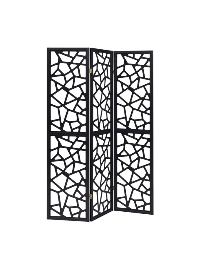 Nailan 3-Panel Open Mosaic Pattern Room Divider Black