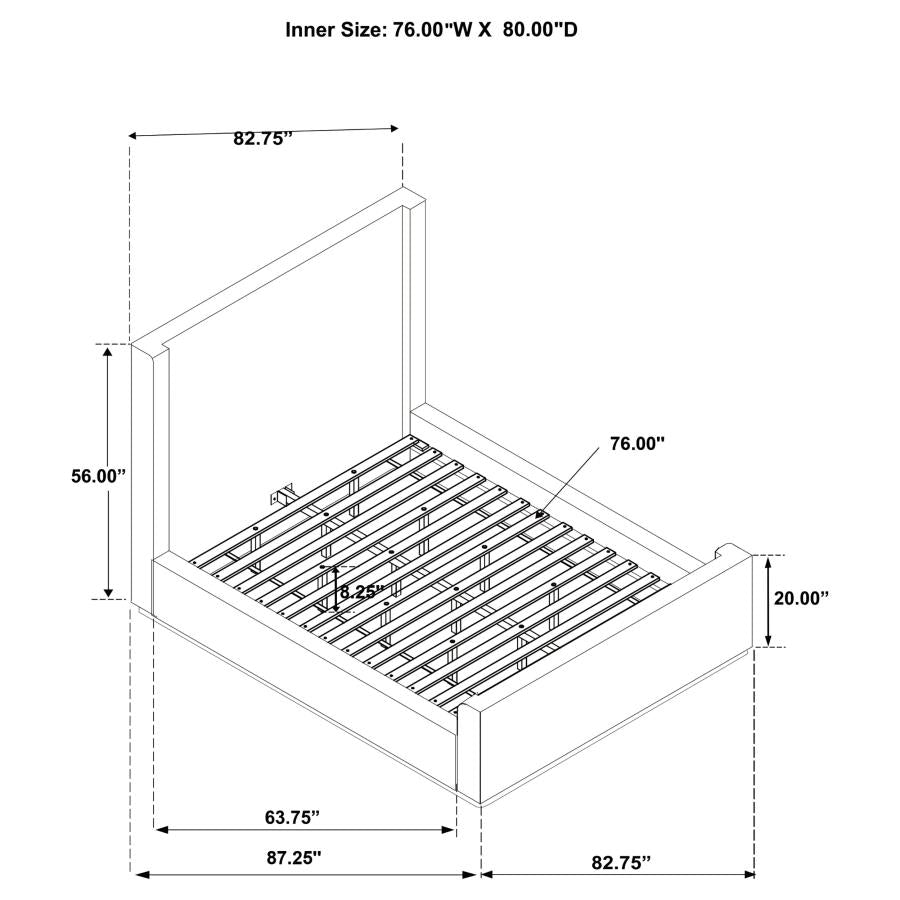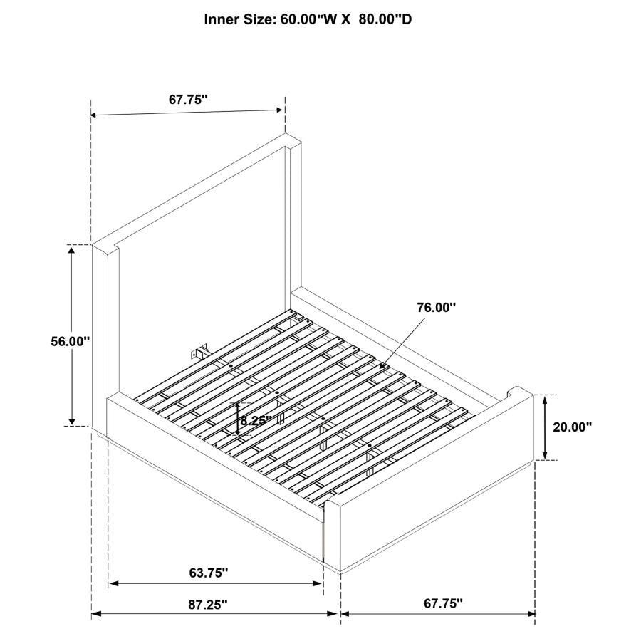 - Wood finish trim along the sides and base of the bed creates contrast and depth