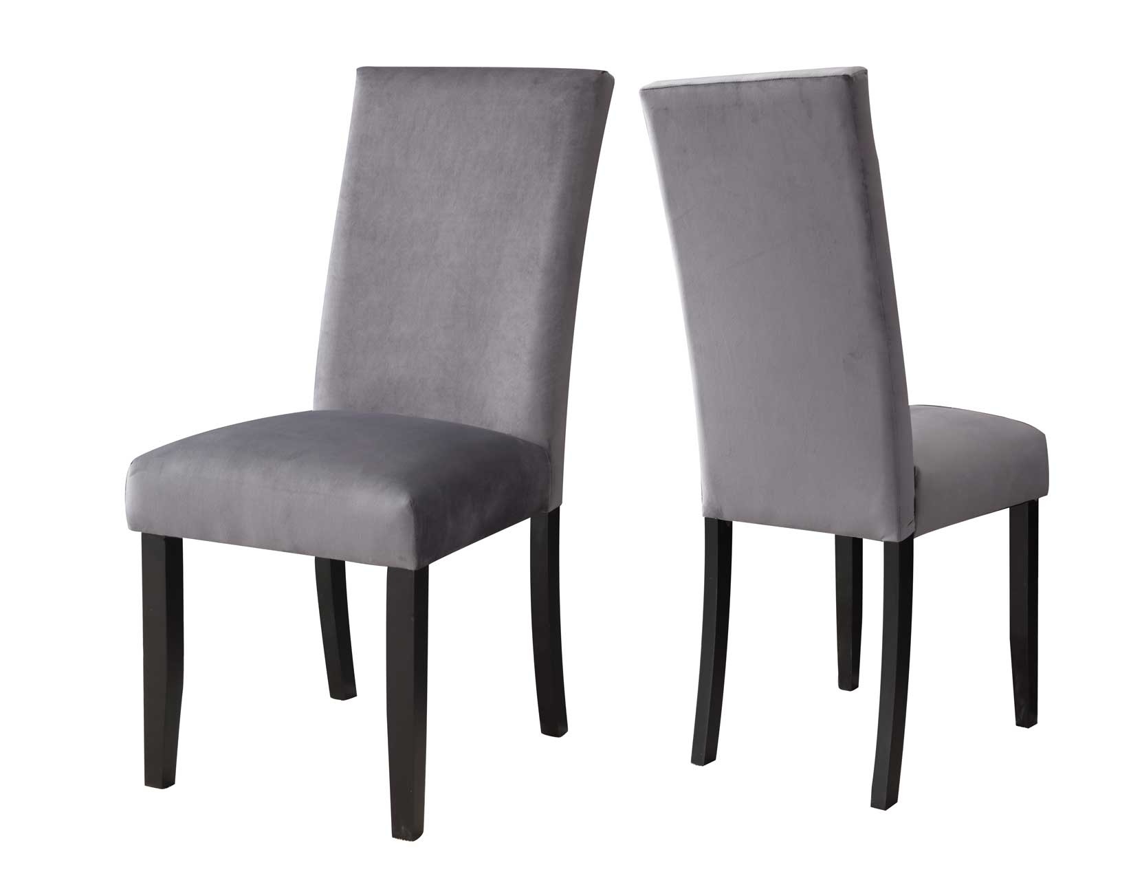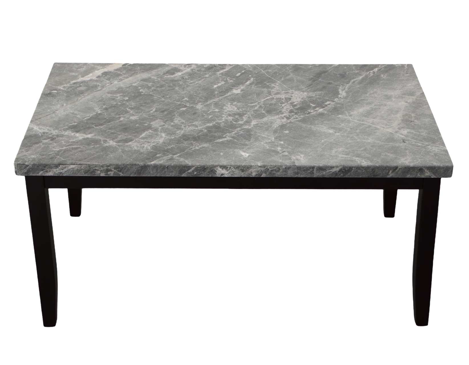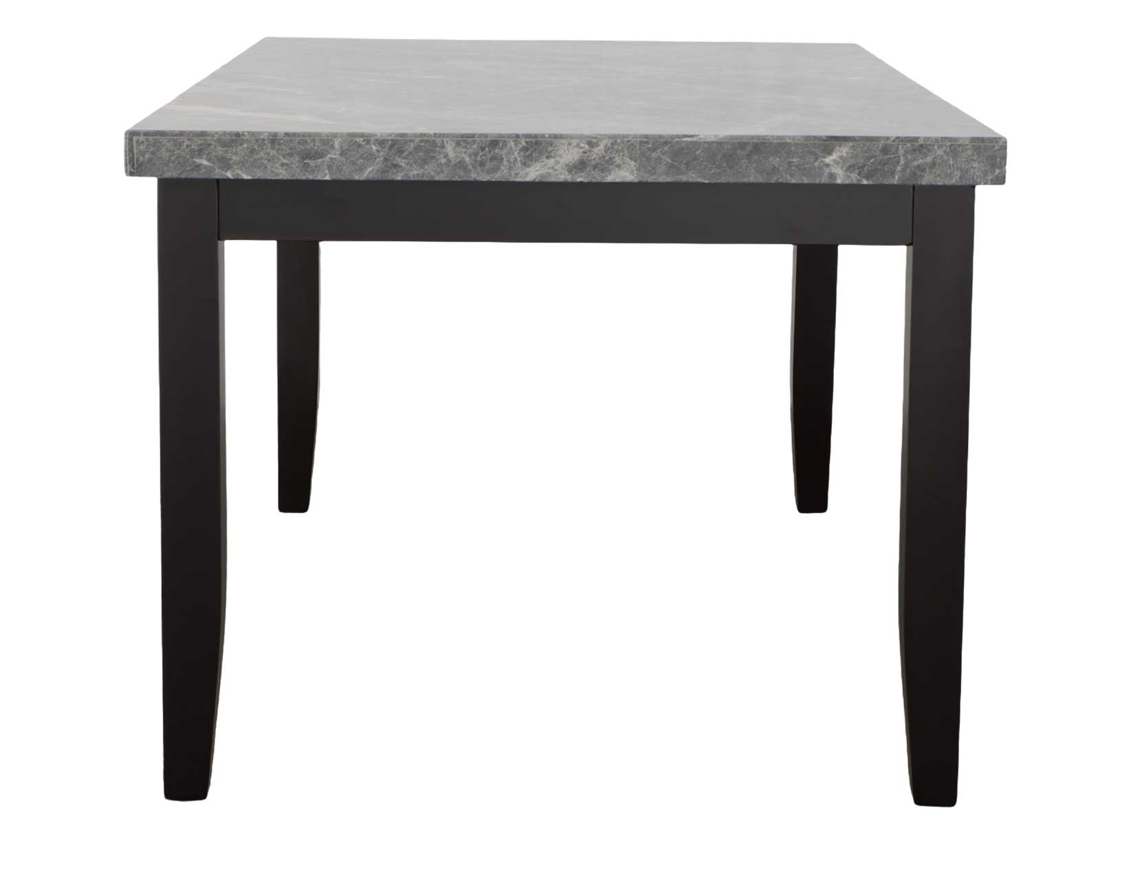 A shimmering gray marble top is the centerpiece of this elegant and functional dining set. Paired with ultra-comfortable gray velvet chairs and a bench, the Napoli dresses up a dining room without making it stuffy. Black finished solid wood legs complement the gray marble top in a neutral set that fits any environment while still commanding attention. The four chairs and bench easily accommodate six guests in a standard dining area.