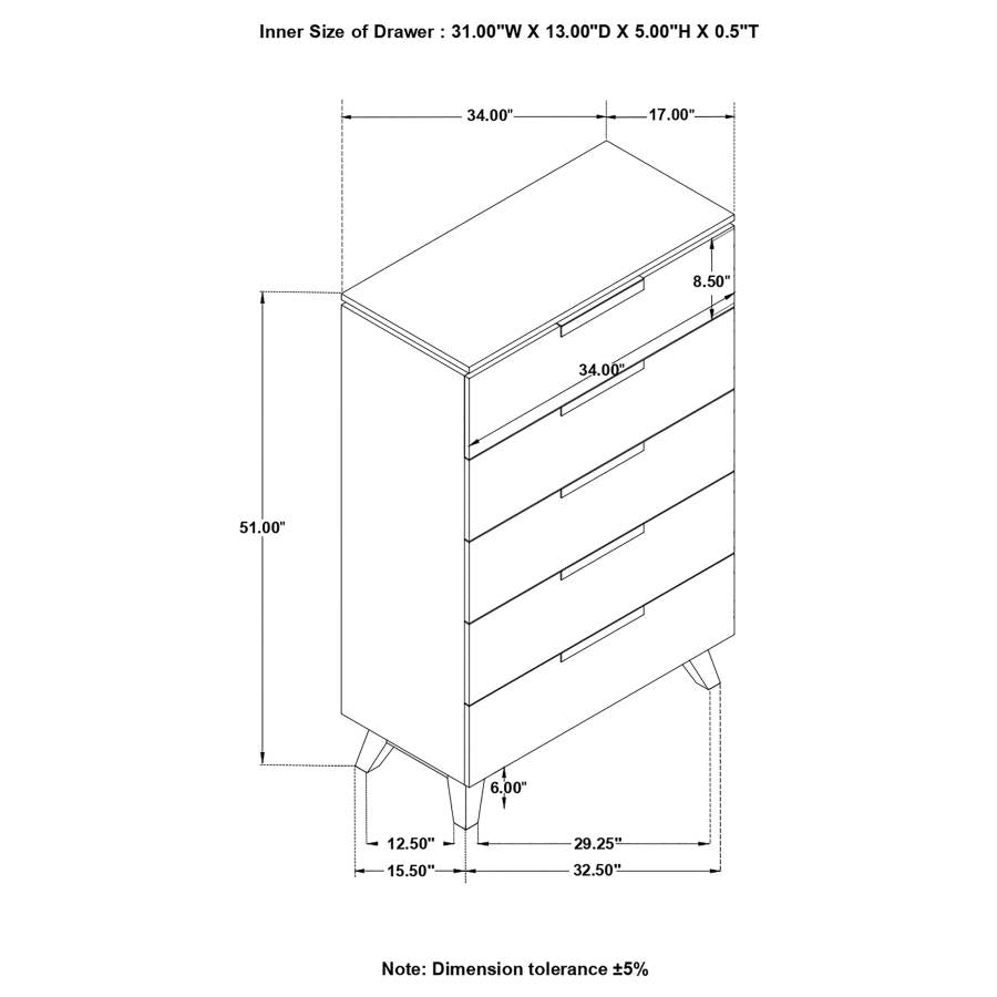 - Set includes: One (1) bed, one (1) nightstand, one (1) dresser, one (1) mirror and one (1) chest