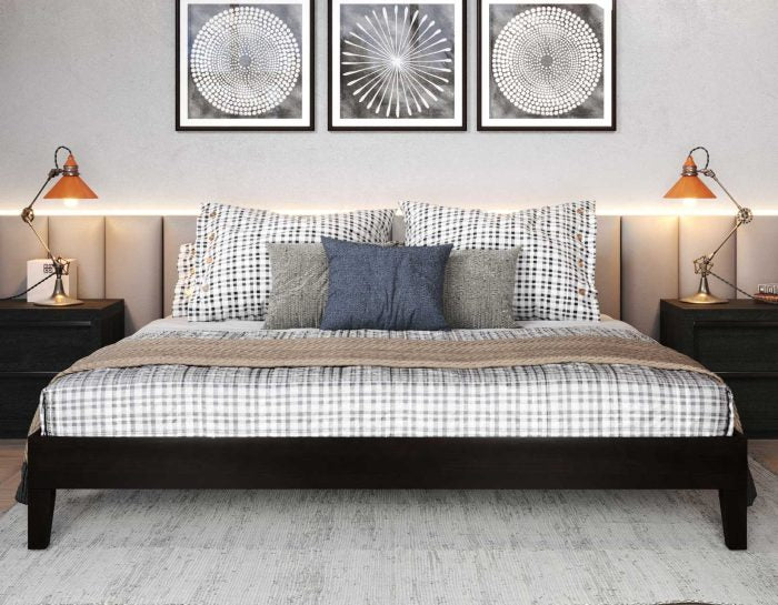 Clean lines and solid wood construction are hallmarks of the Nix Black Platform Bed. The modern silhouette of the King Bed lends a simple sophistication to any room without distracting embellishments. The platform foundation is built to support a mattress without the need for a box spring for a low-profile look that is captivating. Available in three finishes and four sizes, the Nix Platform Bed is versatile and comfortable enough to build an entire bedroom around.