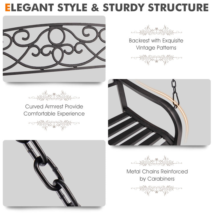 Outdoor 2-Person Metal Porch Swing Chair with Chains