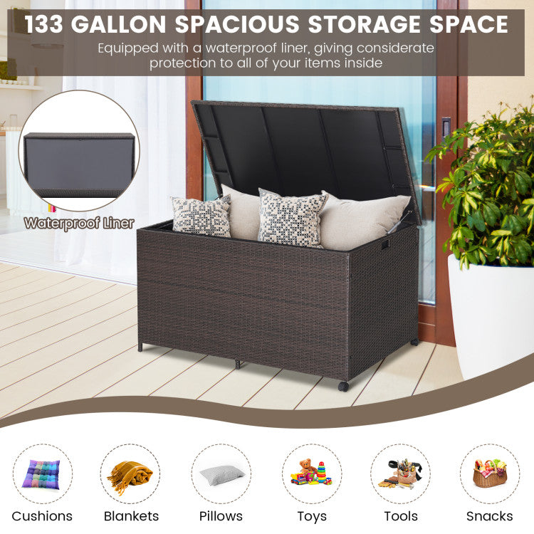 ● Solid Steel and Durable Rattan: The main frame of the storage box is constructed of heavy-duty steel, which is anti-deformation and rustproof. Moreover, the additional legs in the middle highly improve the overall stability. Wrapped with well-woven and colorfast PE rattan, the storage container not only looks elegant, but also withstands long-time outdoor use.