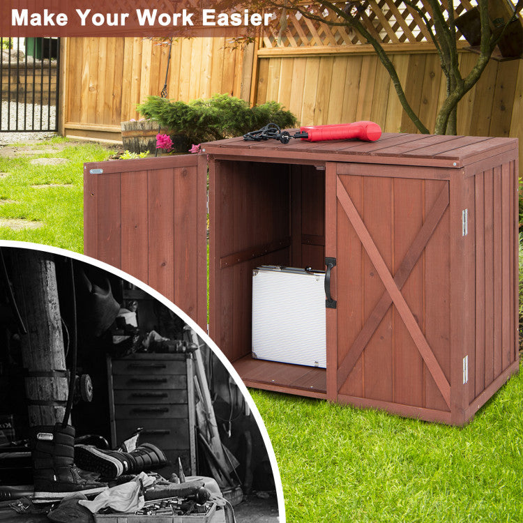 ● High-quality Material: Made of high-quality fir, the storage shed is sturdy and durable with a long service life. The water-based paint coating on the surface is anti-corrosive and odorless, which can resist bad weather, making the shed suitable for outdoor use.