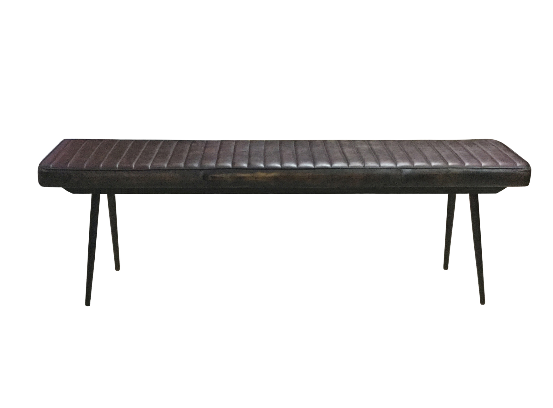 Place this expansive cushioned bench along with a dining table or at the foot of a bed for extra seating. Perfect for an industrial style loft apartment or modern farmhouse home, this bench offers padded cushion for complete comfort and support. The bench cushion even lends a vintage, boho-chic charm with a hand dyed goat leather fabric in a dark espresso hue and a channel tufted design. Each end of the bench is supported by tapered and flared metal legs in a deep black finish. This bench is part of the Partridge collection, which also offers matching chairs, as well as a coordinating dining table and server.