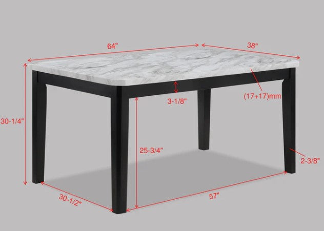 PASCAL DINING WHITE TOP BLACK | 38" X 64" X 30.3"H & TOP 17+17MM/LEG 76MM |