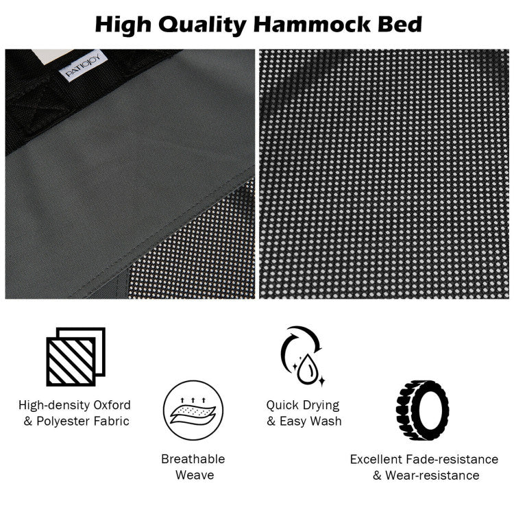 ● High-Density Oxford and Polyester Fabric: This comfortable hammock bed is crafted with high-strength oxford fabric that resists to wears, fade, and rips and breathable polyester fabric that is cool and easy to wash. Plus, equipped with a convenient grid pattern storage pocket offering easy access to books, phones, electronics, and other items.