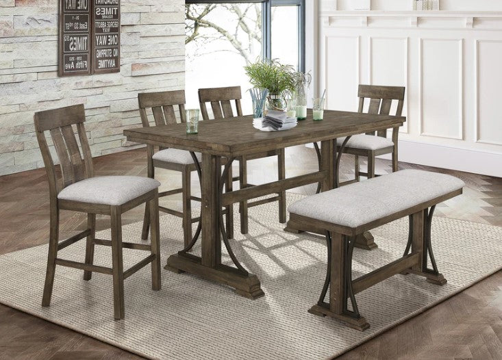 This sleek and stylish Quincy Counter Height Dining Set is a must-have for any modern home. Perfect for those who love to entertain, this dining set seats six and comes with a counter height table and chairs. With its rich brown finish, this set is sure to complement any decor. Bring the elegance of a fine dining restaurant into your own home with the Quincy Counter Height Dining Set.
