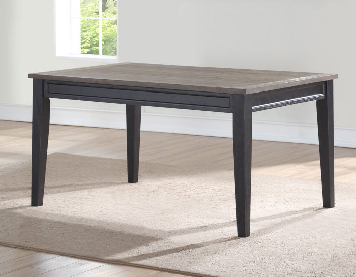 Update your dining space with Raven Noir, This farmhouse styled set gives classic cottage styling a modern take by combining clean lines with a two-tone ebony and driftwood finish. A 59.5-inch table easily accommodates six guests and pairs beautifully with either contoured Schoolhouse styled chairs or tapered-leg benches that can be mixed or matched to fit your own personal style.