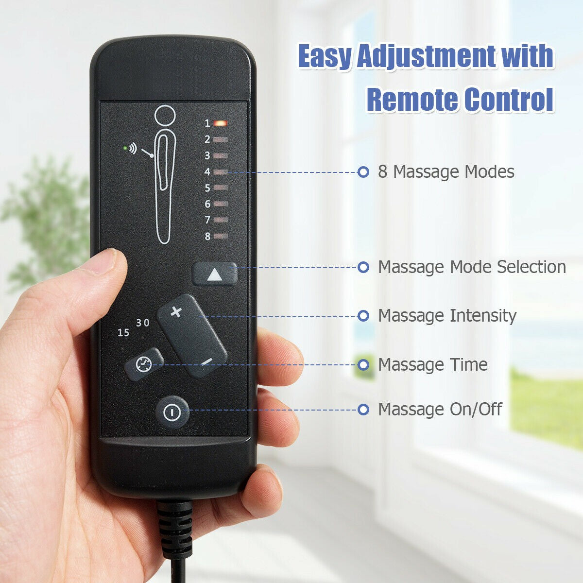 Equipped with a convenient remote control and a side pocket, it can be simply adjusted to your desired massage needs. Further, 90 - 160 degree adjustable angles in 3 fixed positions are added for sitting or lying comfortably when reading, watching TV or having a simply rest. Never worrying about the stability when you lying down, because it is finely crafted from solid metal brackets inside with a high load-bearing capacity. Super comfortable cushion and multiply functions to relieve painful fatigue and tense muscles to be worth buying!