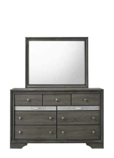 The Regata Dresser Mirror from Crown Mark is the perfect contemporary addition to your home. Crafted from rubberwood with a grey finish, it promises to be both durable and stylish. Its simple and clean design adds an elegant touch to any room. This set is complete with a matching dresser for a complete look. Enjoy the lasting durability this dresser mirror has to offer for years to come.
