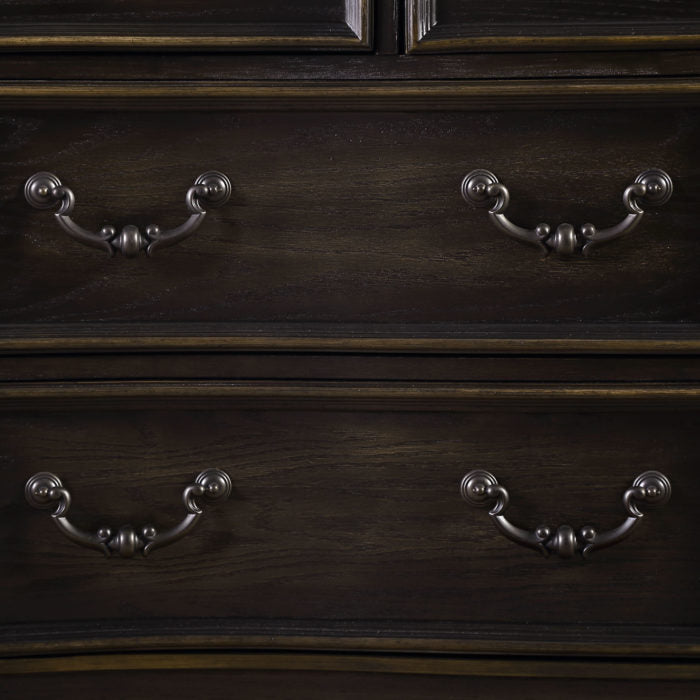 - Finish: multi-step molasses finish with antiqued finish rub-through