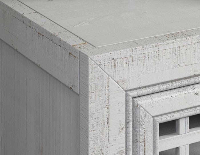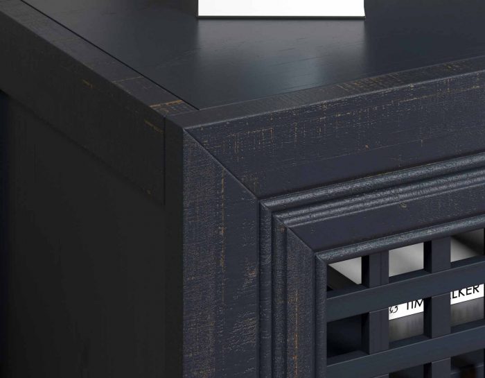 - Artisan hand-rubbed distressed finish with antique rub-through