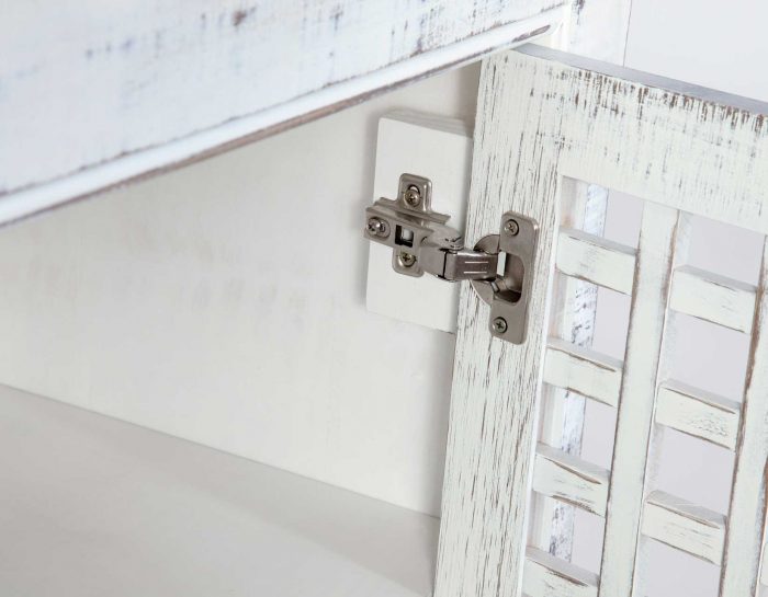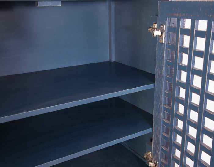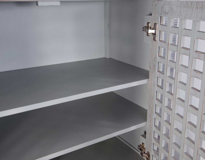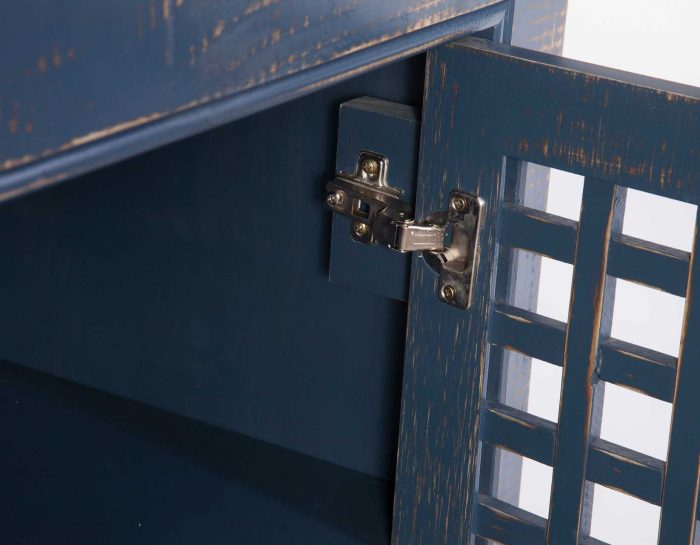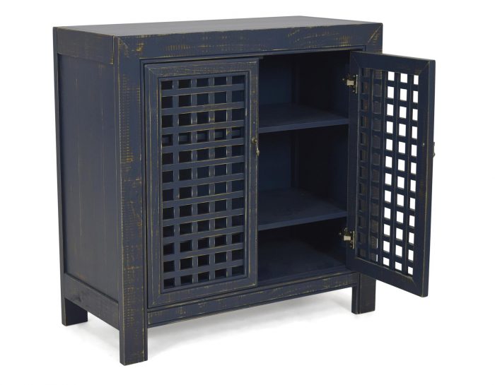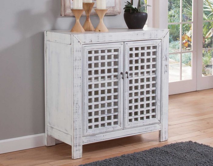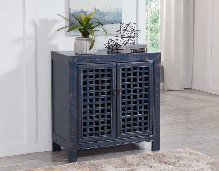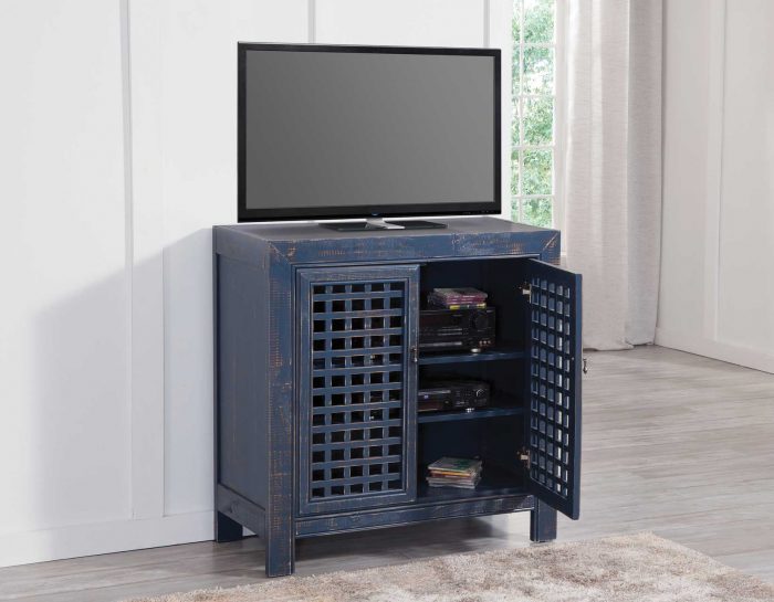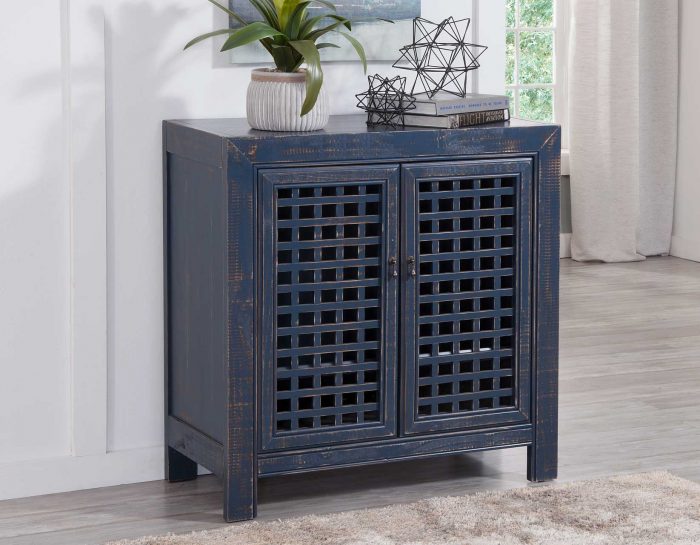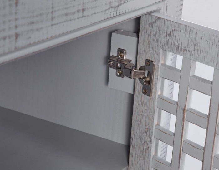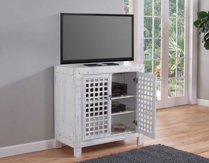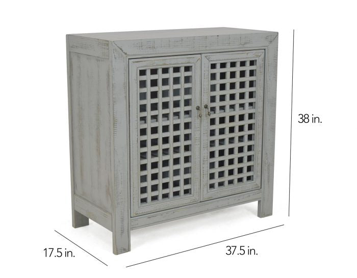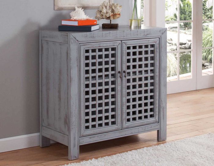 An Accent Cabinet inspired by the Pie Safes of yesterday, the Rio is designed for today’s rooms with a lattice work front that easily accommodates remotes. This cabinet features a farmhouse style that will beautifully complement casual dccors with a distressed, hand-rubbed grey finish that is a neutral accent that adds pop to any room.