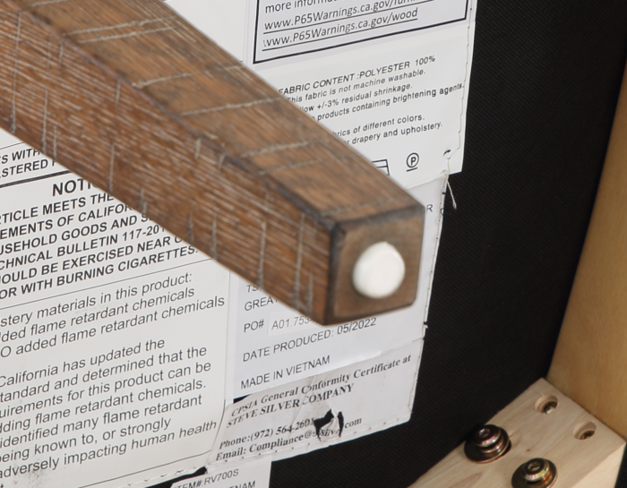 - Constructed of pine and rubberwood solids and engineered hardwoods