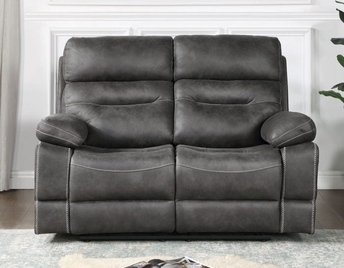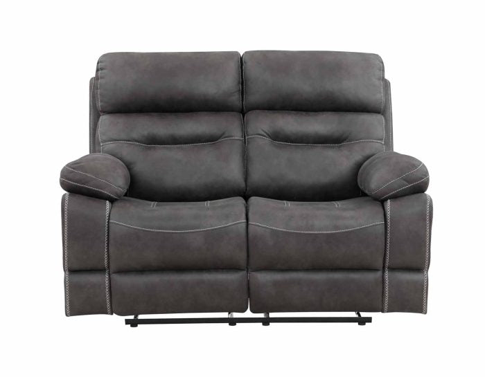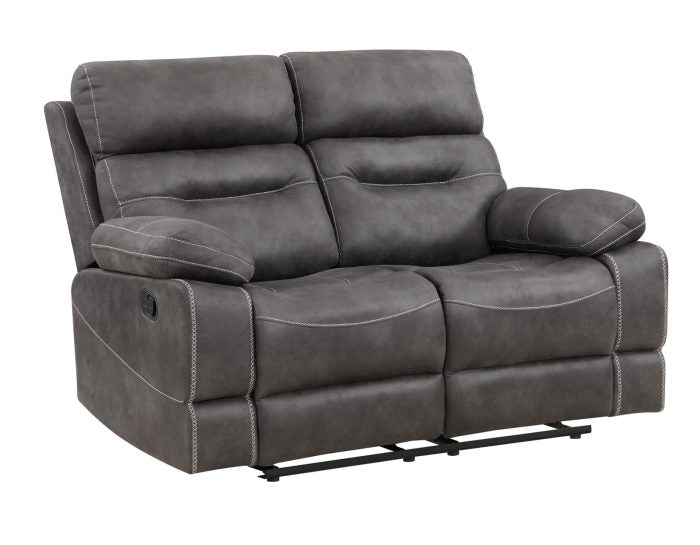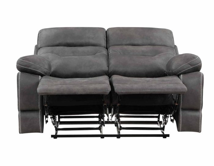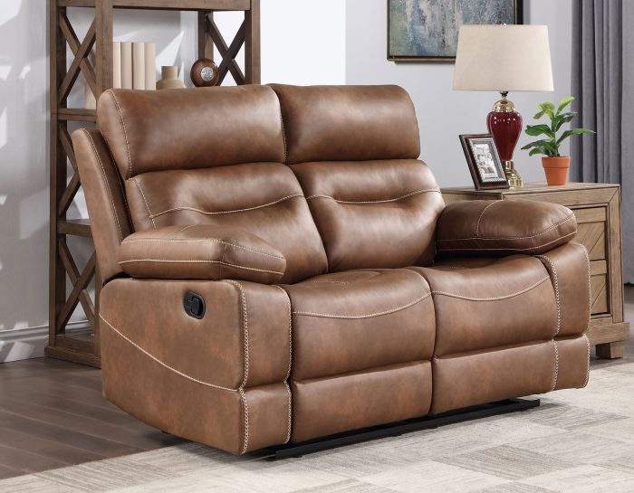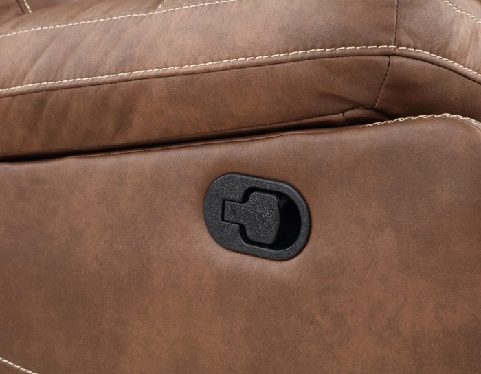 An effortless one-pull motion mechanism quickly and easily reclines to preferred position, offering the ultimate in convenience and comfort. But it’s not just comfort that sets the Rudger loveseat apart. Contrasting baseball stitching adds a touch of sophistication, while the chestnut brown microsuede cover exudes the rugged yet refined charm of an old bomber jacket.