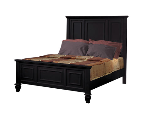 The Sandy Beach collection presents this coastal style 5-piece bedroom set that offers an enduring appeal. The headboard and footboard of the bed have detailed carved panels for a touch of classic distinction. The three-drawer nightstand has a handy pull-out service tray, while the ten-drawer dresser includes two doors that open up to six of the and room on its broad top to easily accommodate the square mirror. The chest features six deep drawers for additional storage space. The entire set is fashioned from maple veneers with a stunning black finish (a classic buttermilk finish is available as well).