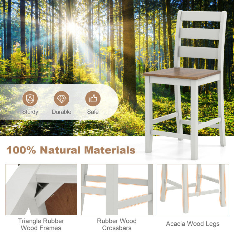 ● 100% Natural Materials: Each counter height chair has rubber wood crossbars that add to the optimal stability. Besides, included acacia wood legs are also sturdy and durable, providing structural support and ensuring a safe sitting experience.