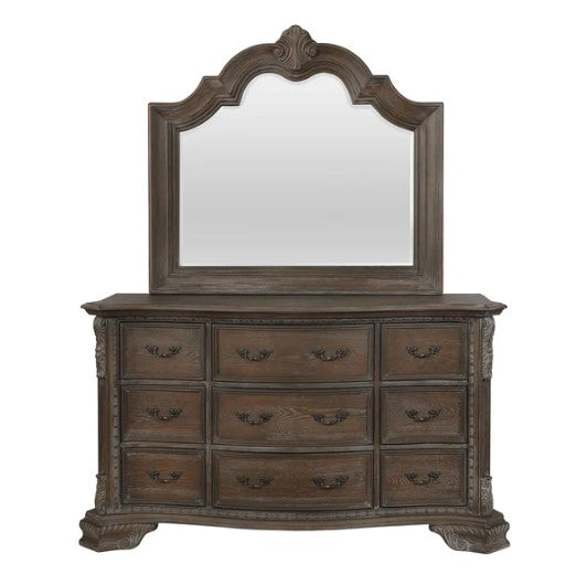 This nine drawer dresser provides awesome bedroom storage in its spacious drawers. Free up space elsewhere with this dresser as it is perfect for storing clothing, extra bedding and more in the drawers. This piece sits on sturdy bracket feet and had decorative bail pull hardware on each drawer front. Pair this dresser with mirror to add even more function and style to your master bedroom.