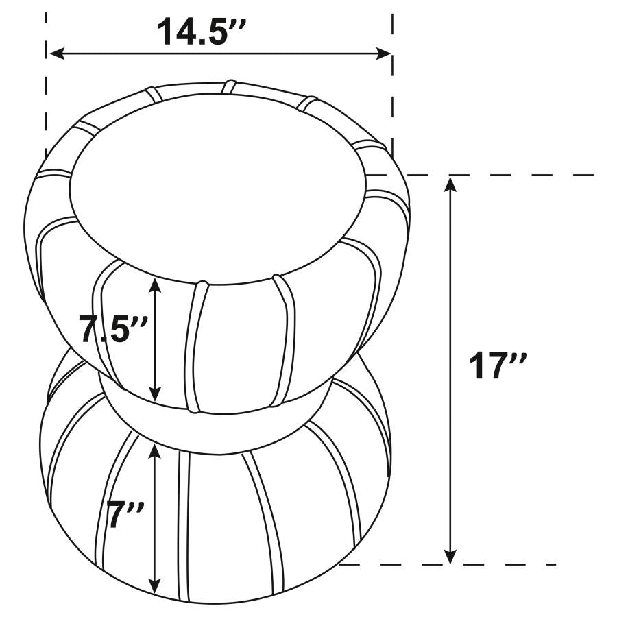 - Ottoman is cinched with a wide gold finish metal band, highlighting is profile