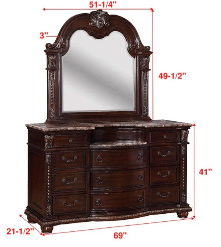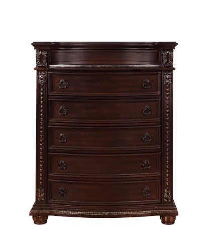 5-piece includes bed, dresser, mirror, nightstand, and chest.