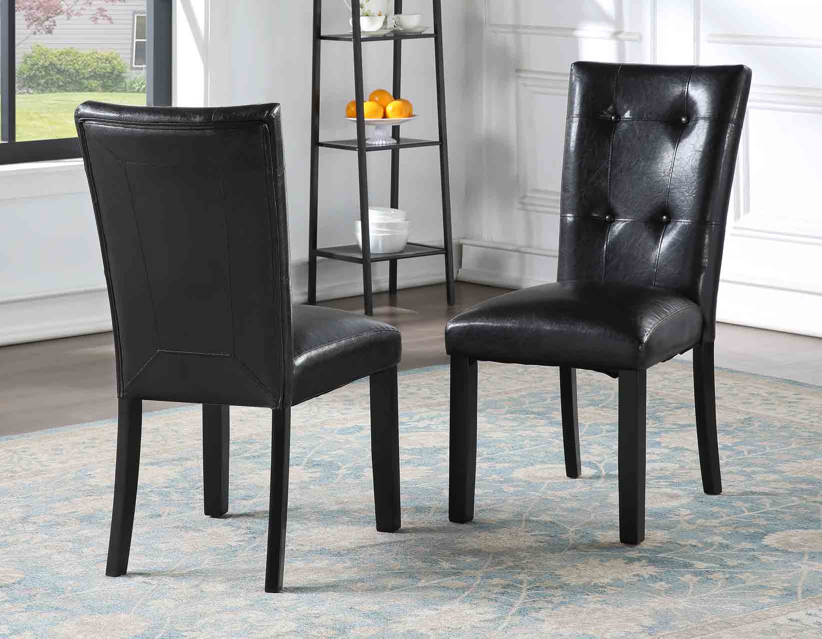 - Button-tufted faux-leather upholstered offer an elegant look in an easy-to-clean black cover