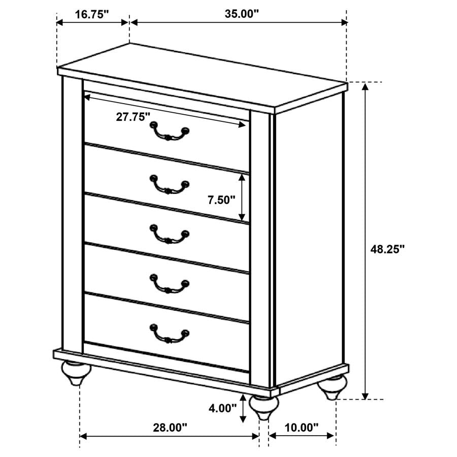 Elevate a bedroom to new heights of style.This country inspired bedroom set has everything you need to complete your personal space.The sleigh bed boasts a classic plank style design with a curved headboard and footboard.The rectangular mirror opens up a room while adding beauty and balance to the decor.The dresser, nightstand, and chest provide ample drawer space for all your bedroom essentials.