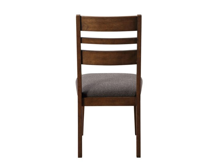 - Styling details include tapered legs with a modern ladderback design and upholstered seat for added style and comfort