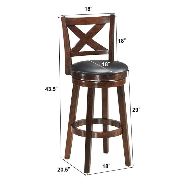 Swivel X-back Upholstered Counter Height Bar Stool with PVC Cushioned Seat