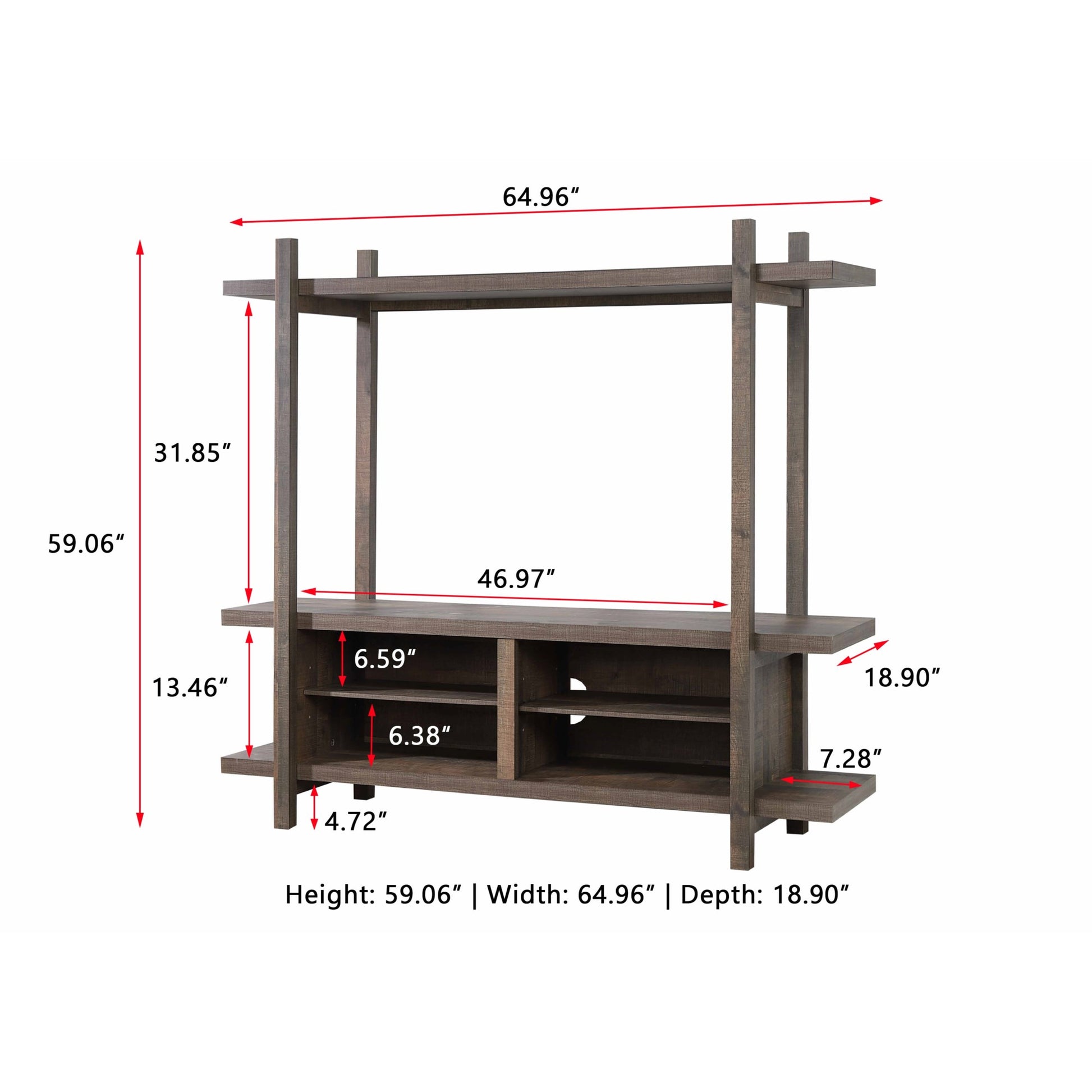 Features four middle shelves, two small side shelves, and a bridge shelf.