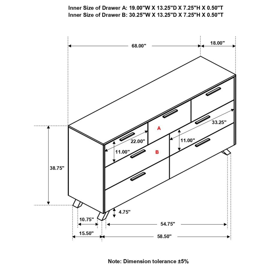 Taylor 7-drawer Rectangular Dresser Light Honey Brown